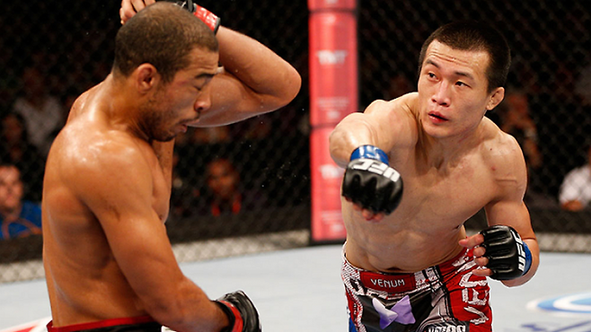 '코리안 좀비'라는 별칭을 얻고 국민들의 응원과 관심이 최고조에 다다른 2013년 8월 정찬성은 한국인 최초로 타이틀전을 치렀습니다. 어깨가 빠지지만 않았다면 조제 알도를 잡고 챔피언 벨트를 맬 뻔도 했지요. 하지만 결과는 패배였고 경기 내용이 좋았다는 것, 아쉬운 패배였다는 것, 운이 따르지 않았다는 것은 오래 기억에 남지 않았습니다. 그저 "정찬성이 졌다"라는 결과만 남았지요.