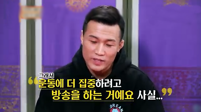 더불어 운동에 소홀한 것 아니냐는 욕을 먹으면서도 방송에 출연하는 이유에 대해서도 "방송 나가는 이유는 하나다. 시간 대비 고소득이다. 운동에 더 집중하려고 방송을 한다"라고 솔직하게 말했습니다.