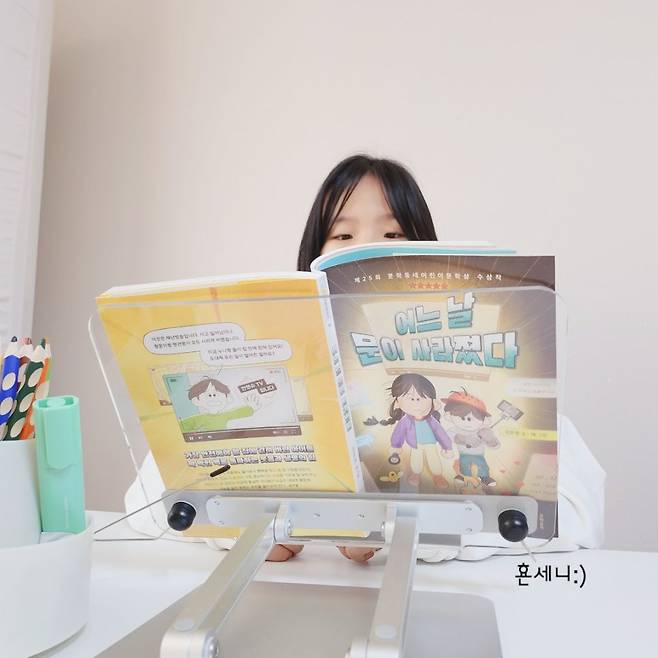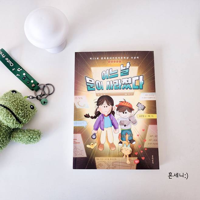 초등 독서록 제25회 문학동네 어린이문학상 수상작 어느 날 문이 사라졌다 도서는 일상에서 지극히 평범하고 편안한 집을 소재로 한 신선 한 스토리라 재미있었어요.