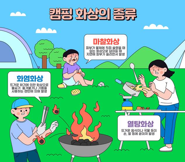 요즘 야외에서 캠핑을 즐기는 사람이 크게 늘었습니다. 야외에서 음식을 직접 해 먹는 만큼 주의해야 할 게 '화상'입니다. 실제로 도시와 멀리 떨어진 캠핑장에서 불을 피우거나 물을 끓이고 고기를 굽는 등 요리할 때 예기치 못하게 화상을 입어, 당황해하는 사람도 적잖습니다. 그런데 예로부터 '화상 부위에 소주를 부으라', '감자·된장을 대라'는 식의 민간요법이 내려옵니다. 과연 사실일까요?