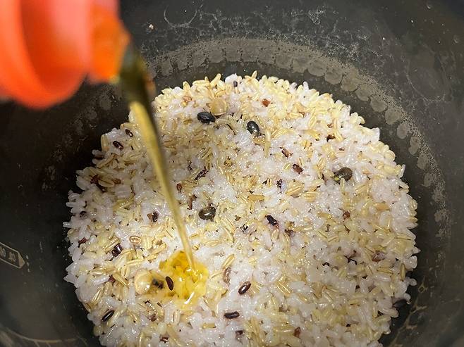 밥은 맛소금, 통깨, 참기름을 넣어 미간을 하세요. 저는 김밥 2줄 분량의 밥에 소금 5~6꼬집, 참기름 2스푼, 통깨 1스푼 넣었습니다.
