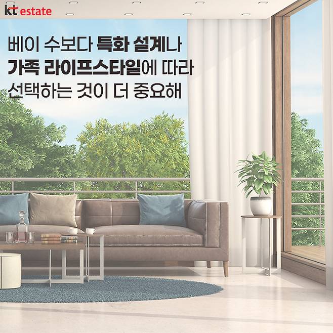 따라서 베이 수가 많다고 무조건 좋다는 식의 생각보다는 우리 가족의 라이프스타일에 좋은 구조를 선택하는 것이 현명한 방법입니다. 가족 수가 적고 거실 개방감을 중요하게 생각한다면 2베이가 좋을 수 있으며, 가족 수가 많고 채광이 무엇보다 중요하다면 4베이가 적절한 선택이 될 수 있는 셈입니다.