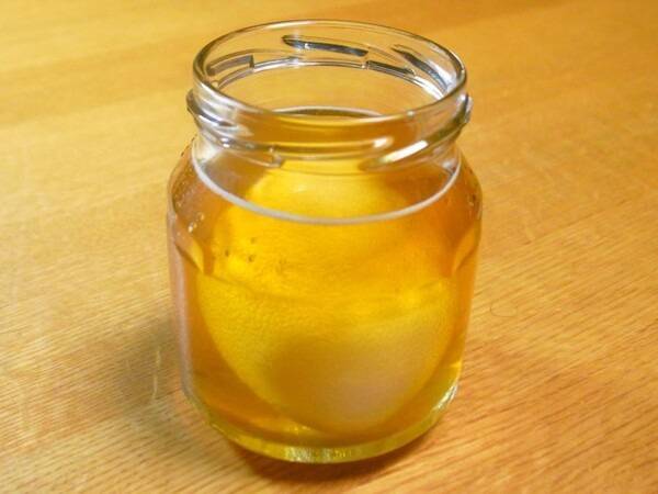 계란이 완전히 잠기도록 사과식초나 현미식초를 붓기