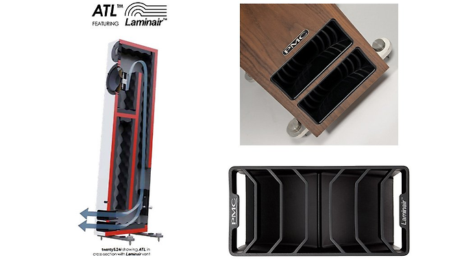 이와 연관된 트랜스미션 테크놀로지는 인클로저 안에 설치되어 있다. 그 길이가 무려 3미터에 이른다. 즉, 2웨이 형태의 스피커에서 최대의 저역 리스폰스를 끌어내기 위한 “게임 체인저”가 바로 3미터에 달하는 ATL인 셈이다. 따라서 이런 정교한 배출구 시스템을 구축할 수밖에 없는 것이다