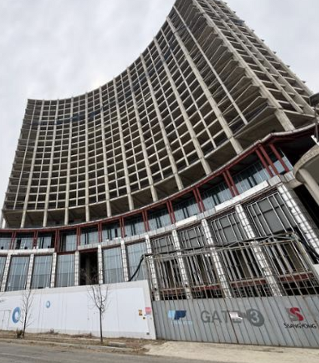 이 거대한 프로젝트가 멈춰 선 사정은 복잡합니다. 2017년 야심 차게 착공에 들어갔지만 공정률 약 25% 지점인 24층 높이에서 자금 조달 문제와 공사비 미지급 분쟁이 터지며 2020년 2월 전후로 시계가 멈춰버렸습니다.