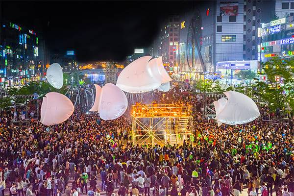 축제 마지막 날인 5월 6일 월요일 폐막식에서는 불꽃놀이가 화려하게 안산 고잔동의 밤을 수놓습니다. 문화광장 양 옆으로 형성된 상점가에서는 저마다 야외 좌석을 설치해두니 축제를 즐기고 함께 이용하기 좋습니다.