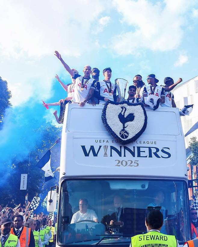 토트넘도 구단 SNS를 통해 손흥민의 우승 세리머니 모습을 담은 사진을 올렸다. 토트넘은 "손흥민은 유럽 트로피를 들어올린 캡틴들의 엘리트 그룹에 합류했다"며 "토트넘의 진정한 레전드(True Legend)"라 명명했다. 또한 손흥민, 멀러리, 페리먼 세 명의 주장이 나란히 트로피를 든 이미지를 게시하며 구단의 상징임을 공식적으로 알렸다.