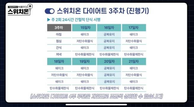 그러나 1주일에 3회를 24시간 단식이 들어간다.