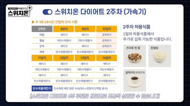 그리고 저녁에는 저탄수화물식으로 밥이 허용된다.