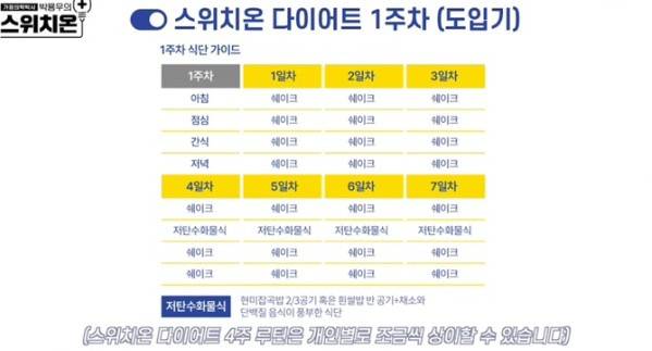 다이어트는 총 4주간 진행된다.