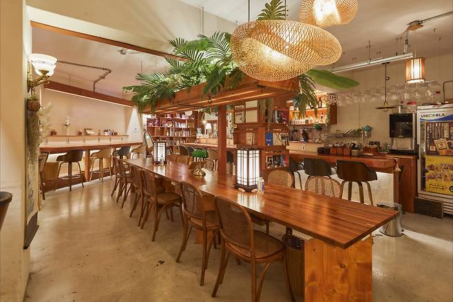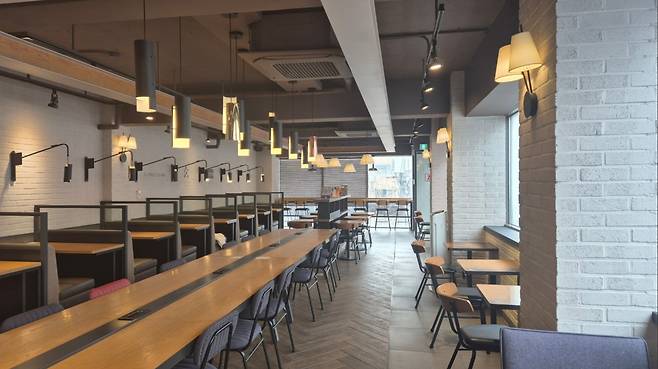 오후엔 살짝 어두워지는 채광과 조명이 어우러져, 커플들이 조용히 대화 나누는 모습이 많아요.