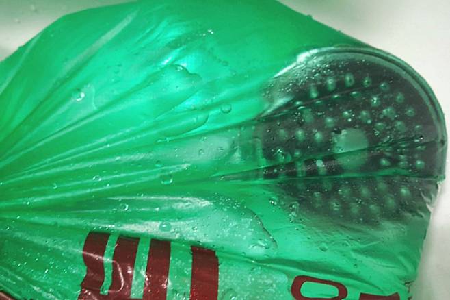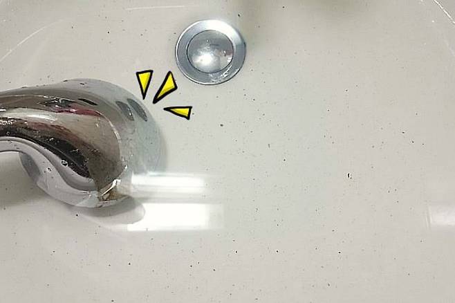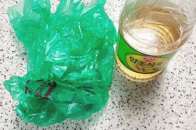 1시간 뒤 비닐봉지 물을 쏟아보니 시커먼 가루 같은 이물질이 잔뜩 나오더라고요.