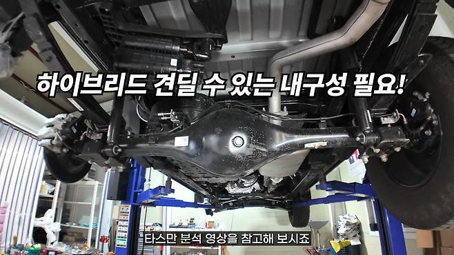 2.5 가솔린 터보와 전기 모터의 조합으로 300마력이 넘는 고출력을 발휘하는 하이브리드 시스템은 높은 수준의 플랫폼 강성을 요구한다. 현재 타스만의 바디 온 프레임 구조가 이러한 고출력 하이브리드 시스템을 충분히 지원할 수 있는지에 대한 검증이 필요한 상황이다.