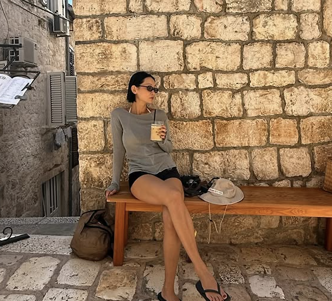 그녀의 인스타그램 속 대표적인 룩은 브라운 슬리브리스 톱에 루즈 핏 데님 팬츠, 블랙 플립플랍을 매치한 조합입니다. 여기에 볼드한 선글라스와 백팩을 더해 ‘꾸민 듯 안 꾸민 듯’한 힙한 무드를 완성했죠. 또 다른 스타일에서는 그레이 슬리브리스와 화이트 린넨 팬츠를 매치하여 시원하면서도 단조롭지 않은 여름 코디를 선보였습니다.