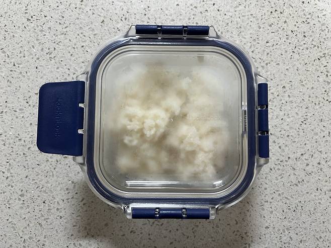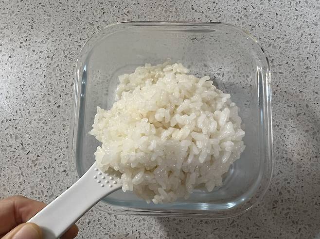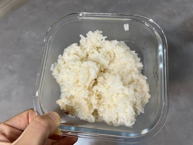 1. 따뜻한 상태의 밥을 소분용기에 1회 분량씩 담습니다.