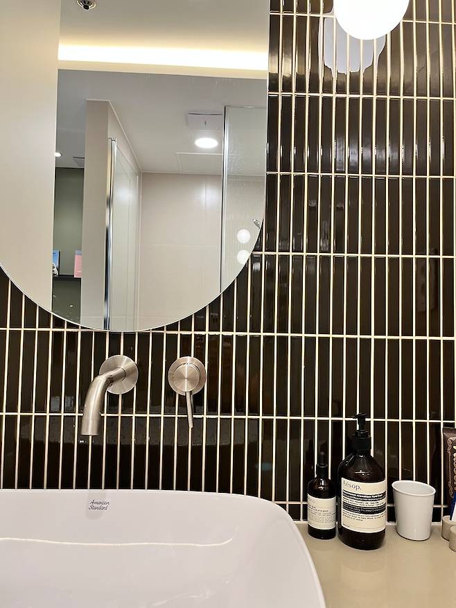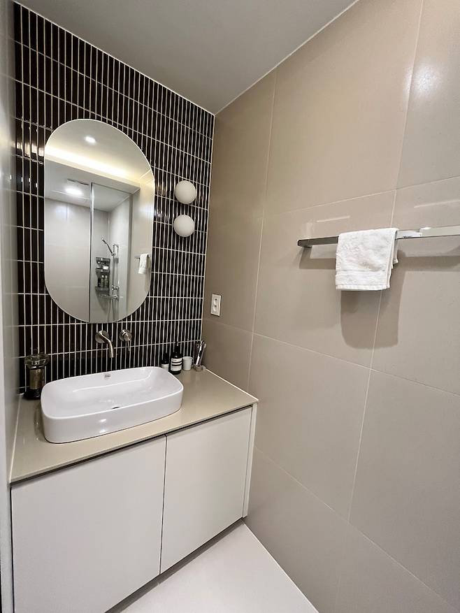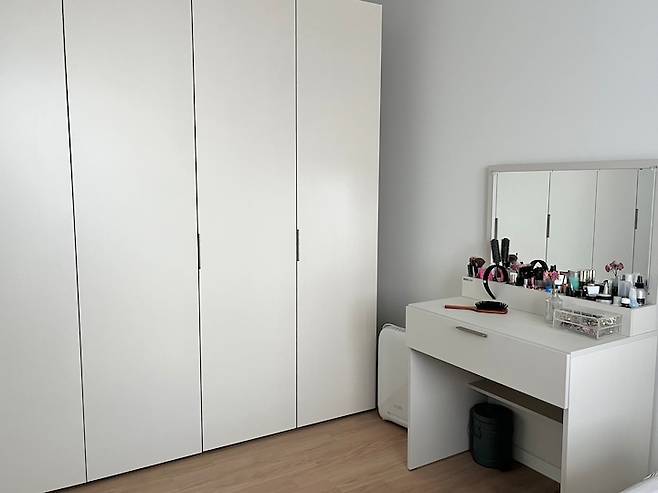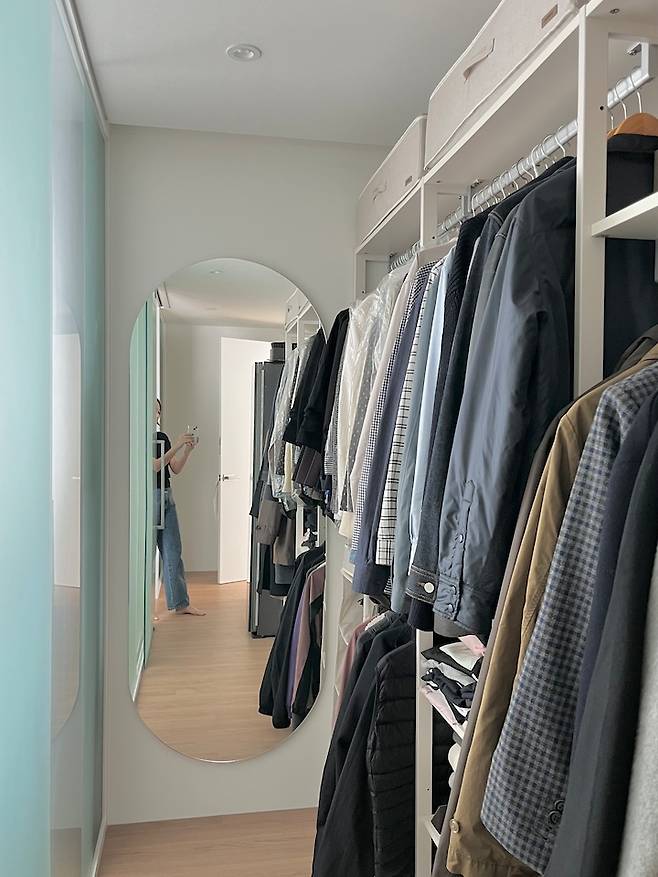 벽에는 전신거울을 시공해서 OOTD를 확인해요 ㅎㅎㅎ