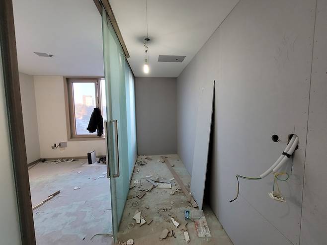 저희 집은 아파트가 아닌 실평수 26평의 오피스텔입니다. 게다가 전에 살던 분들은 실제 오피스 공간으로 사용하시던 곳이라, 집이 아닌 사무실 느낌이 낭낭 하던 곳이었어요. 그래서 구조도 일반 아파트와는 조금 다르죠. 오피스텔이다 보니 베란다가 없고, 공간 분리가 거의 되어 있지 않은 구조였습니다. 일반적인 아파트라면 작은방이 3개 정도 있을만한 평수지만, 저희 집은 방 2개에 거실 공간이 꽤나 넓었어요.