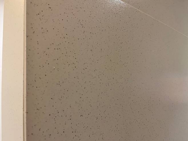 벽/바닥에 사용한 타일은 아이보리 색상에, 자세히 보면 점박이 무늬가 있는데요, 후추를 뿌린듯한 유니크한 패턴이라 너무 마음에 들었어요. 올리브색 유광타일이랑도 너무 잘 어울리고요. :)