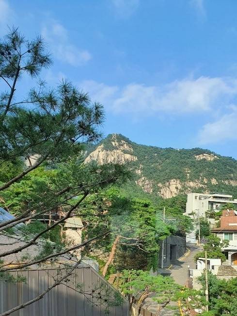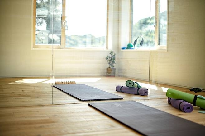 요가실에서 본 창밖 풍경입니다. 가만히 누워만 있어도 힐링이 되는 곳이에요.