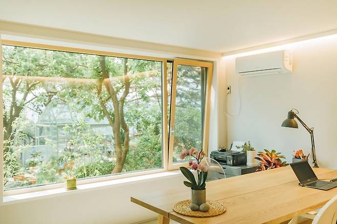정원을 바라보며 책도 읽고 일도 할 수 있는 공간입니다.