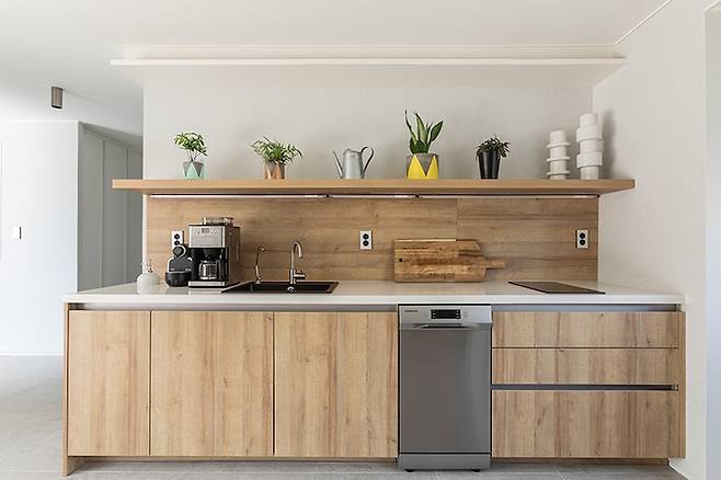 2층에 있는 주방은 지인들과 차와 커피를 즐길 수 있는 공간으로 쓰고 있습니다. 기존에 가지고 있던 세덱 원목 그릇장과 어울리는 한샘 키친바흐로 했습니다.