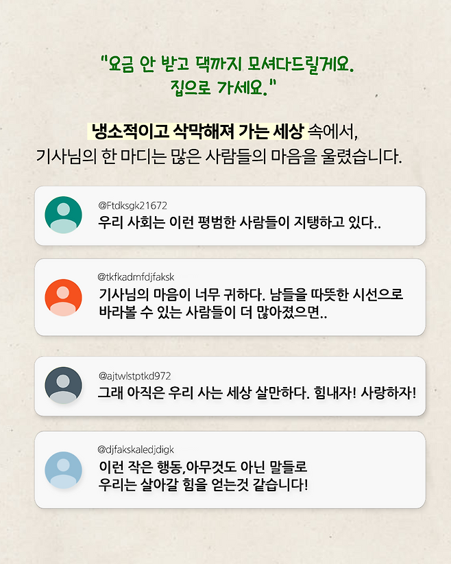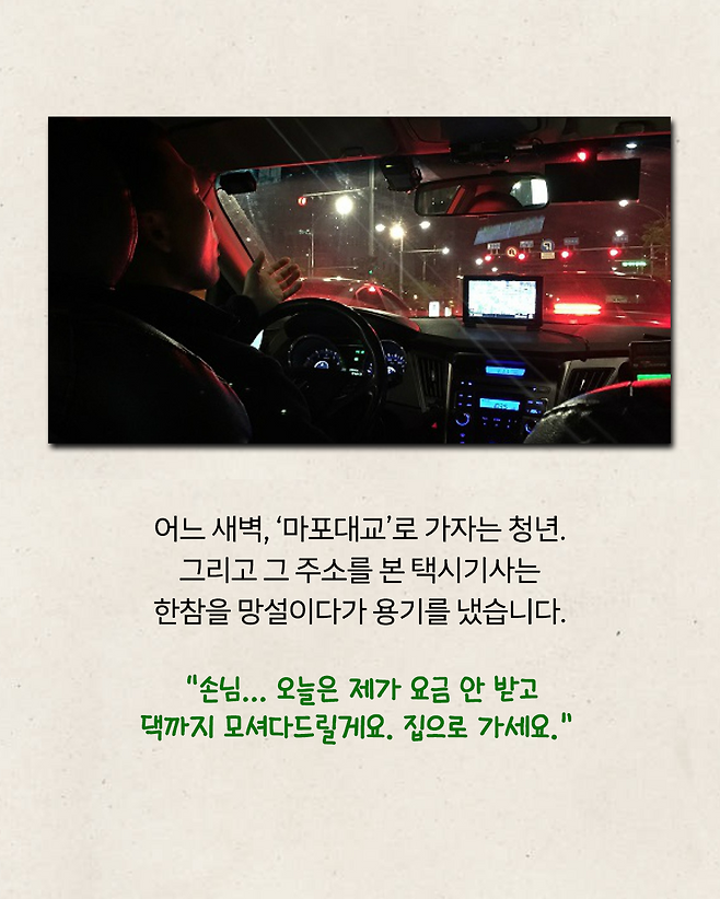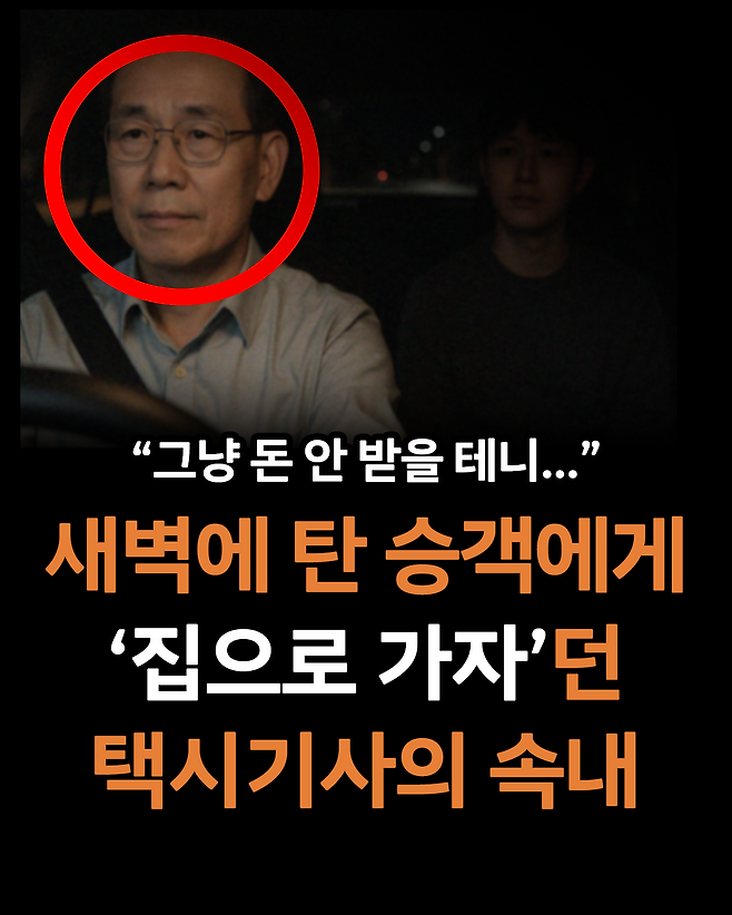 "돈 안 받을 테니.." 새벽에 혼자 탄 승객에게 '집으로 가자'던 택시기사의 속내