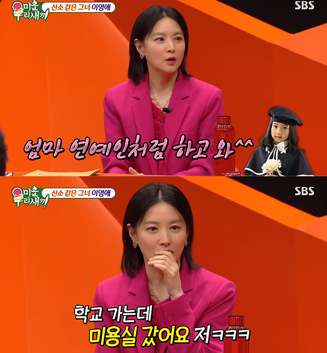 "엄마, 연예인처럼 하고 나와" 지적받았다고 말해 웃음을 안기기도했다.