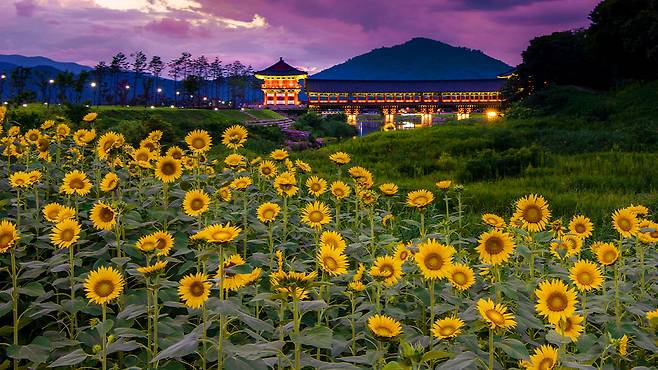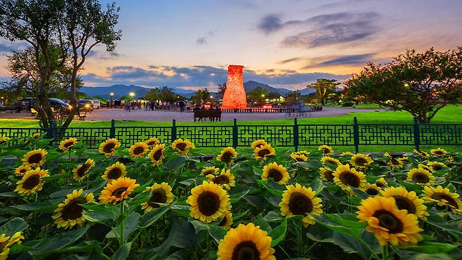 해바라기 군락 주변에는 야간 조명이 설치돼 일몰 후에도 낭만적인 풍경을 감상할 수 있다.