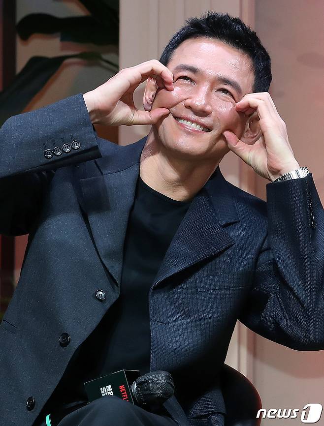 (서울=뉴스1) 김진환 기자 = 배우 황정민이 7일 오전 서울 강남구 역삼동 조선팰리스 서울강남에서 열린 넷플릭스 오리지널 시리즈 '수리남' 제작발표회에서 포즈를 취하고 있다.