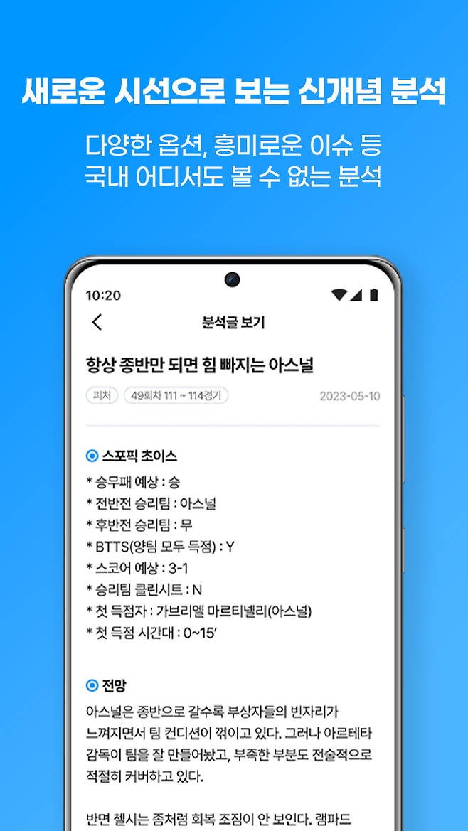 스포픽은 텍스트 위주의 전문가 예상평이 대다수인 기존 스포츠 정보 앱과 확연히 다른 차별점을 가진다.