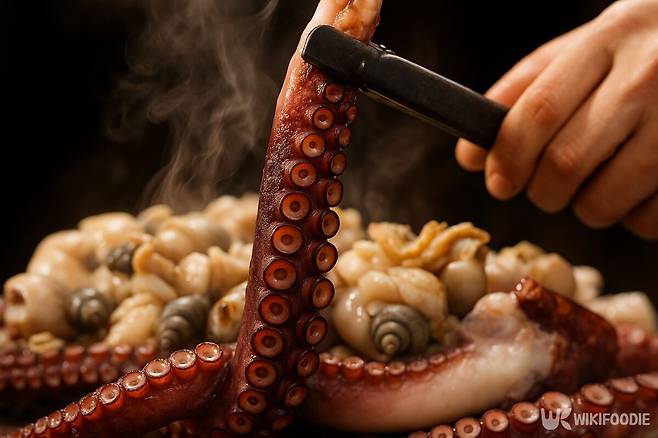 삼척의 한 아파트 상가에 숨은 '동해안'은 동네 주민들이 수시로 드나드는 사랑방 같은 공간이다. 이곳은 동해에서만 잡히는 신선한 피문어를 빠르게 공수해 삶은 숙회로 내놓는다. 문어는 사장님의 손끝에서 야들야들하게 삶아지며, 쫄깃한 참골뱅이와 함께 곁들여 한 접시로 제공된다.