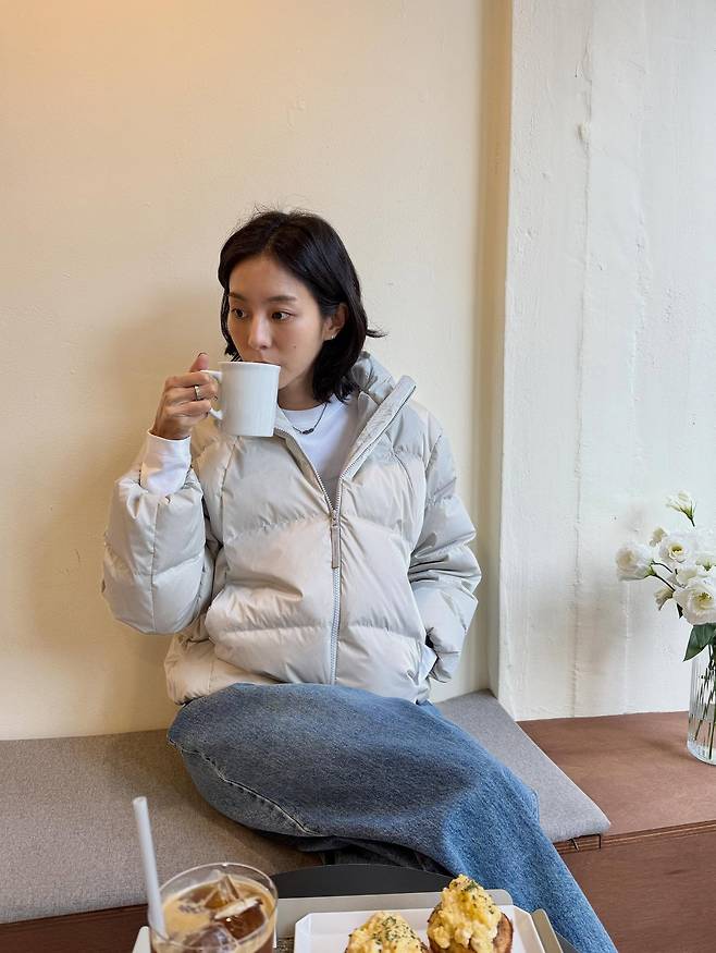 밝은 그레이 패딩이 얼굴 톤을 깨끗하게 살려주면서도, 부해 보이지 않게 적당한 볼륨으로 겨울 분위기를 편안하게 잡아준 느낌이었어요.