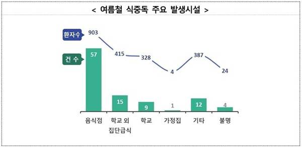 한편, 식약처 발표에서는 식중독이 주로 음식점에서 발생하는 경향이 크다는 점도 지적했다. 평균 98건 중 57건이 음식점에서 발생한 식중독이었다. 다양한 재료를 대량으로 다루거나 보관하는 과정에서 미비점이 발생하여 식중독으로 이어지는 경우가 많다는 것이다.