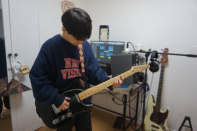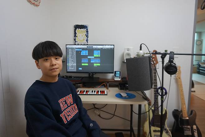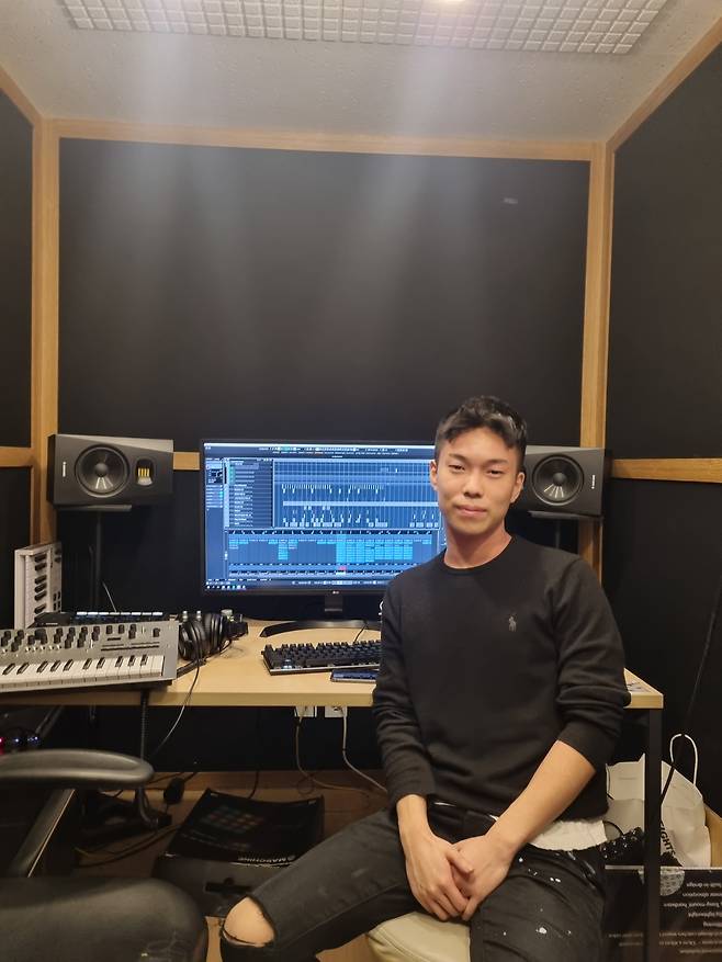 올해 18살인 임건우도 율음처럼 학교 다닐 때부터 비트를 만들면서 보냈다. 요즘은 경기 일산에 있는 스튜디오에서 매일 12시간씩 땀을 쏟으며 첫 앨범을 준비한다. 스튜디오가 들어선 상가엔 마사지숍부터 만화방, 모텔까지 여러 가게가 들어서 있다. 건물 5층에 그가 작업하는 스튜디오가 있다. 두 사람이 들어가면 꽉 차는 크기다. 테이블과 컴퓨터, 키보드, 스피커, 마이크만으로도 이미 가득 찰 정도다.