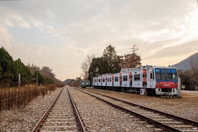 기차가 다니지 않기 때문에 철로 위를 마음껏 걸어다닐 수 있습니다. 그래서인지 간이역과 철로를 배경으로 예쁜 사진을 남기기 위해 많은 사람이 찾습니다. 선로 한쪽엔 오래된 전동차 2량이 설치작품처럼 서 있습니다. 레트로한 감성을 즐기기에 더 없이 좋은 소품입니다.