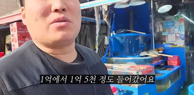 가게 앞에 있는 수조는 한 대당 보통 한 달에 평균 전기비가 한 15만 원 정도 나와요. 상일동 가게는 권리금이 1,000만 원 들어갔어요. 보증금 2,000만 원에 월세가 1층은 150만 원이고, 2층이랑 3층 다 빌렸어요. 건물을 통으로 빌려서 월세를 다 하면 450만 원 정도 되죠.
