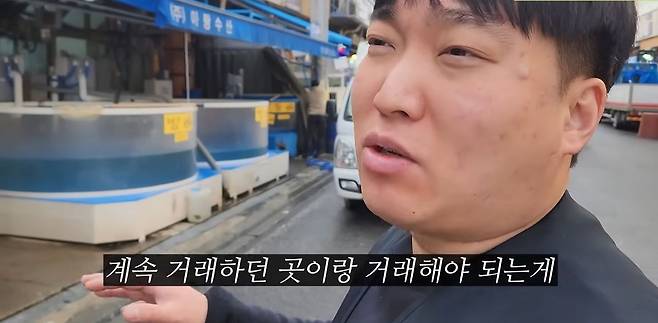 수산물 시장에는 빨리 와서 좋은 걸 선점해야 해요. 그래서 원래 계속 거래하던 곳이랑 거래해야 하는 게, 계속 거래하면 좋은 걸 줘요. 진짜 장사로 많이 남기고 싶은 분들은 차 끌고 여러 집을 막 돌아다녀요. 그렇게 값이 싸고 조금 안 좋은 물건들을 가져다 팔면 더 많이 남죠. 대신 단점이 물량이 부족할 때는 그런 사람들한테 고기를 안 줘요. 왜냐면 박쥐 같으니까요.
