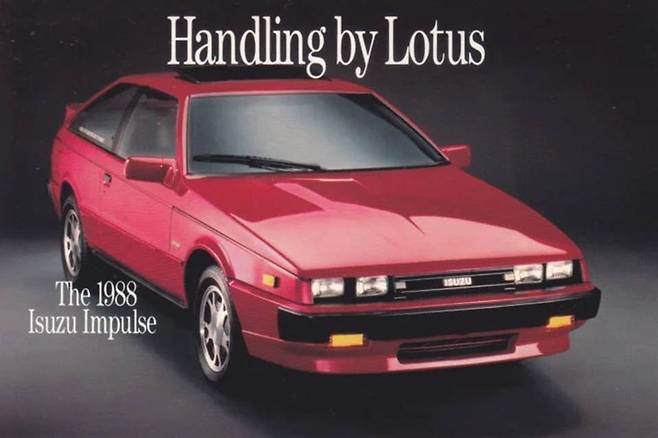 로터스가 튜닝했단 사실을 자랑스럽게 붙인 차도 있다. 바로 이스즈 피아자다. 이탈리아의 디자인 거장 조르제토 주지아로가 스타일을 책임진 이스즈의 스포츠 쿠페로, 북미에선 '이스즈 임펄스'란 이름으로 판매됐다. 1987년, 당시 피아자 라인업 중 로터스가 설계한 서스펜션이 적용된 고성능 버전이 있었는데, 측면에 '핸들링 바이 로터스'란 문구를 붙였다.