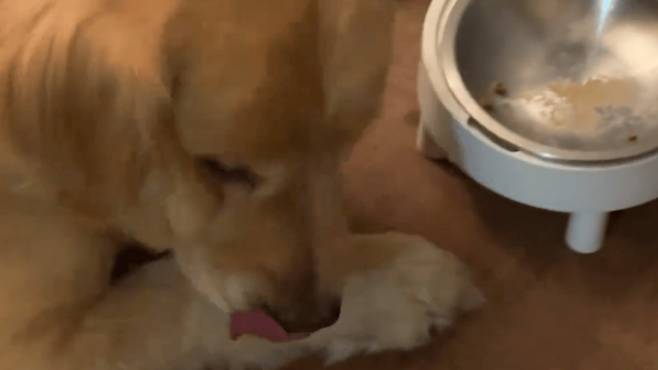 주인은 이 황당한 광경에 웃음을 참을 수 없었고, 옆집 사람에게 연신 사과를 거듭했습니다. 반면 골든 리트리버는 입맛을 다시며 꼬리를 흔들어 작은 고양이에게 마치 "맛있게 잘 먹었어!"라고 자랑하는 듯한 태도를 보였습니다.