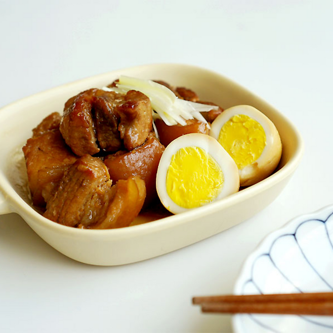 그릇에 예쁘게 담아내어주면 맛있는 일본식 돼지고기조림 부타노가쿠니 완성이에요 !