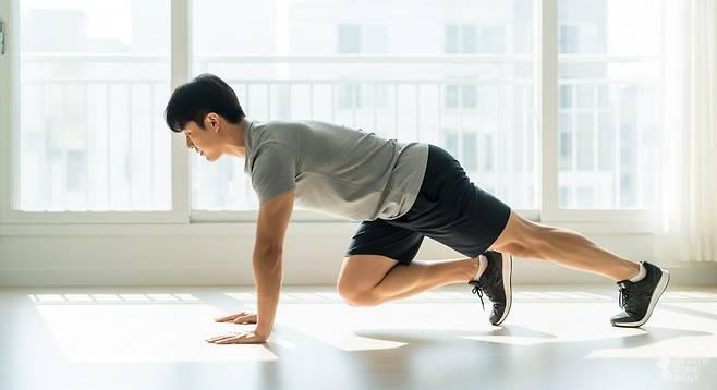 마운틴 클라이머는 이름처럼 산을 오르는 동작을 응용한 운동으로, 짧은 시간 안에 전신을 강하게 자극한다. 복근과 코어를 중심으로 팔, 어깨, 엉덩이, 허벅지 등 여러 부위가 동시에 움직이며, 빠른 템포로 반복할수록 심박수가 상승해 유산소 효과도 크게 높아진다.