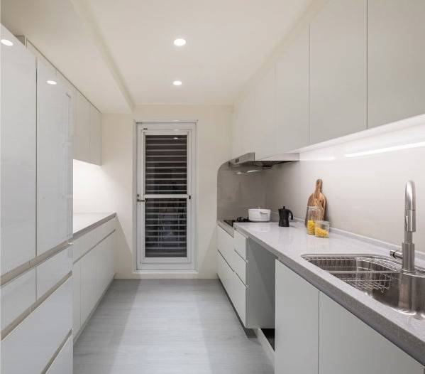 주방 역시 화이트 톤으로 통일해 청결하고 넓어 보이는 느낌을 살렸습니다.