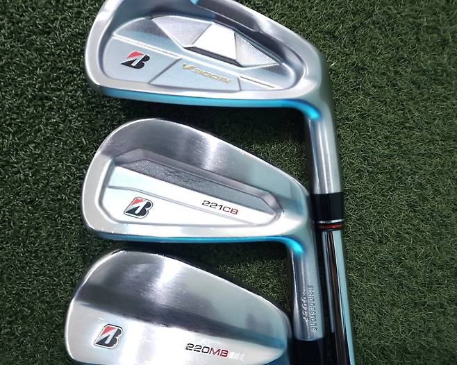 사진 보면 가장 위에 있는 V300 아이언이 더 커 보이지요? 아래의 커스텀으로 맞춤 가능한 221CB와 220MB 아이언 헤드는 비교적 작습니다. 그러나, V300 아이언과 가격 차이는 샤프트에 따라 더욱더 클 수 있다는 (200만원 이상) 점! 즉, V300 IX 아이언 세트 가격이 그나마 착하다고 볼 수 있다는 거지요.