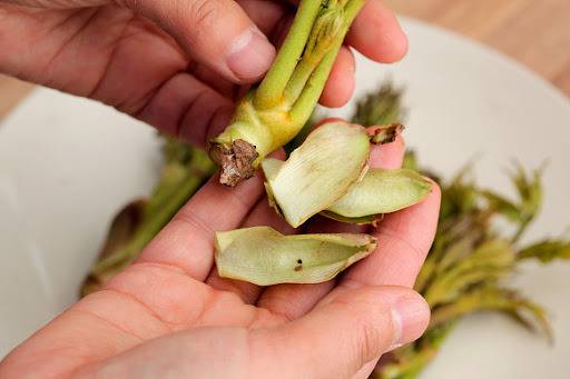 두릅을 절대 생으로 드시지 말고 소금을 약간 넣은 끓는 물에 머리 부분부터 넣어 충분히 데쳐낸 뒤 찬물에 잠시 담가 남은 독기를 빼내는 것이 핵심입니다.