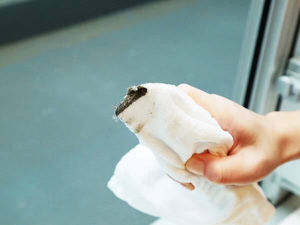 마지막으로 키친타월로 창틀을 꼼꼼하게 닦아내면 청소가 완벽하게 마무리됩니다.