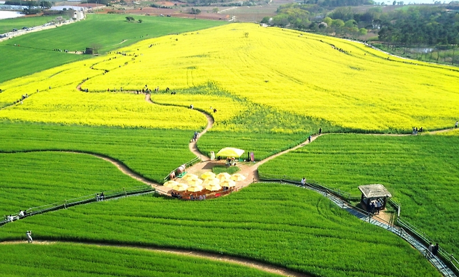 전라북도 고창은 5월이 되면 푸른 보리밭과 노란 유채꽃이 어우러진 장관을 볼 수 있는 곳입니다. 특히 학원농장에서 열리는 '청보리밭 축제'는 가족 여행객들에게 인기 만점입니다. ✨
