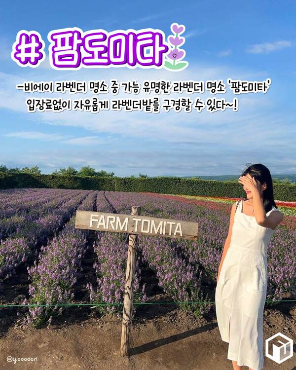 비에이 라벤더 명소 중 가장 유명한 후라노 팜도미타는 '도미타'라는 농장 주인이 오랫동안 라벤더를 재배하던 농장으로 1976년 일본 철도 회사 달력에 소개되며 지역 전체가 관광명소가 된 대표적인 비에이 라벤더 농장입니다.