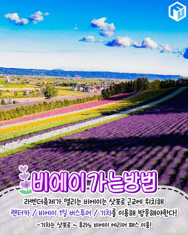 만약 렌터카 여행이 부담스러운신 분들은 라벤더밭외 비에이와 후라노 지역들의 관광지들을 투어하는 1일 투어도 이용할 수 있으니 이용해 보시길 바랍니다.