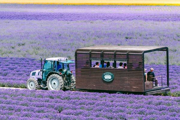 팜도미타 제 2농장인 라벤더 이스트 농장은 평지로 되어 있어 둘러보기에 좋고 특히 라벤더 농장 사이로 운행하는 라벤더 트랙터가 따로 운영되고 있어 편하게 트랙터를 타고 보라빛 라벤더 농장을 투어해 보는 것도 나쁘지 않습니다.