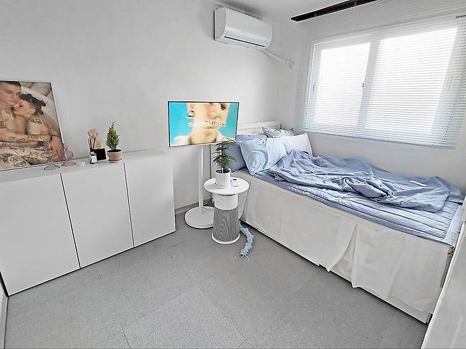 이 집에 오기 전에는 늘 풀옵션 오피스텔에서 지냈어요. 그러다가 아무것도 없는 주택에서 살게 되니 모든 것을 새로 사야 하겠더라고요. 그 과정에서 가장 힘들었던 건 '가전 옮기기'였던 것 같아요. 세탁기와 냉장고는 이사 당일에 들어와야 하는데 갑자기 물건이 없다고 취소되거나, 물건이 왔는데도 현관문이 작아서 넣을 수가 없었거든요. 어쩔 수 없이 전문가분들이 창문 높이까지 큰 가전을 들어 올려서 넣어주셨는데 정말 힘들었던 기억이 납니다.